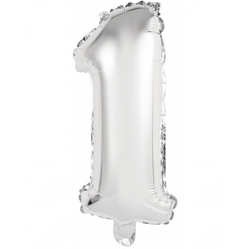 Globo Número 1 Auto-Inflable Plata 35cm aprox.